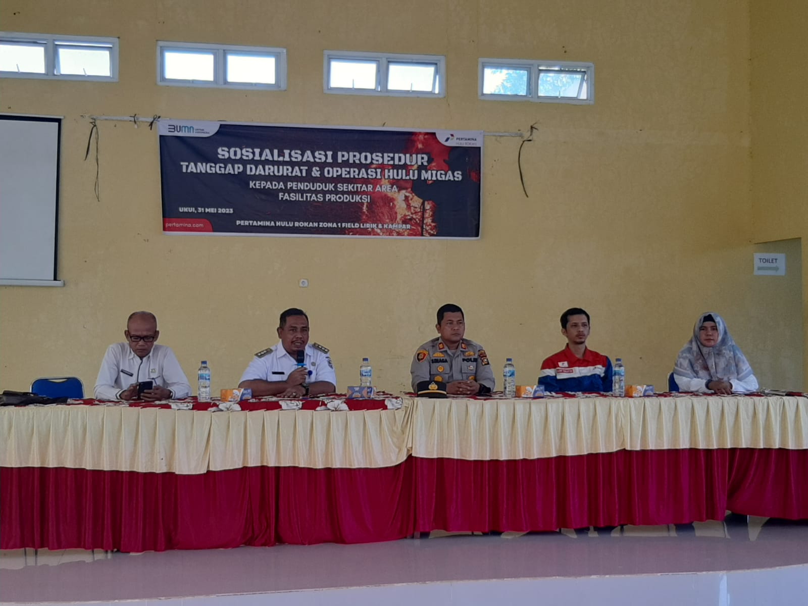 PELALAWAN, NEWSHANTER.COM- Bertempat di Gedung Serba Guna Kecamatan Ukui berlangsung kegiatan sosialisasi Prosedur tanggap darurat dan operasi Hulu Migas yang digagas oleh Pertamina.