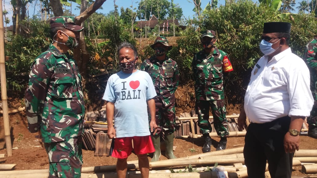 Karanganyar – Didampingi Dansatgas TMMD Reguler Ke-109 Letkol Inf Ikhsan Agung Widyo Wibowo, Kasiter Korem 074/Wrt Letkol Inf Aksin, Danki Satgas TMMD 109 Kapten Inf Supardi dan Kades Jatiwarno Catur Sujito, beliau melihat secara langsung perkembangan dilapangan rumah Prayitno (55) warga Dusun Trugo Desa Jatiwarno yang sedang dilaksanakan perehapan dalam Program TMMD Reg 109.