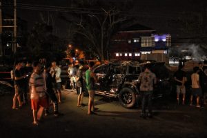 Menurut saksi mata, mobil Pajero Sport warna hitam dengan pelat nomor B 1181 PJE, melaju dari arah Simpang Angkatan 66 ke arah Simpang Patal.