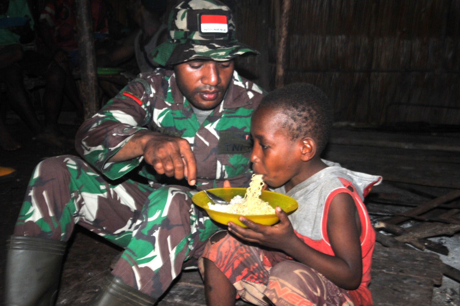 “Salah satu kedekatan personel Satgas TMMD Ke-116 dengan masyarakat Kampung Homlikya nampak saat mereka melaksanakan masak dan makan bersama di rumah pasangan Bapak Egidius Aun dan Ibu Eleneria”. ungkap Dandim 1707/Merauke pada hari Jum’at tanggal 19 Mei 2023.
