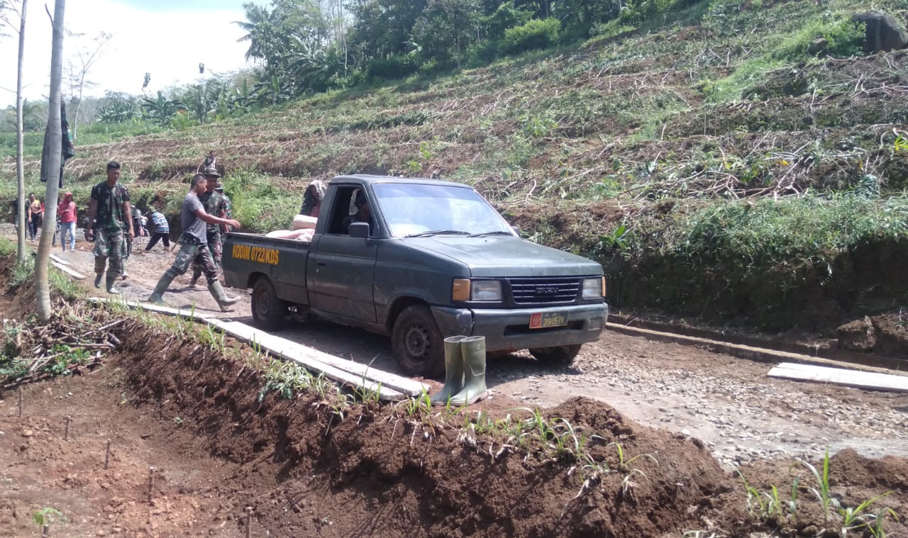 Kapten Inf Sulikan mengatakan, “Pemuatan bahan material ini memang sengaja kita angkut dengan mobil dinas milik Kodim supaya pelaksanaan lebih cepat dan efektif di banding mengunakan sepeda motor.