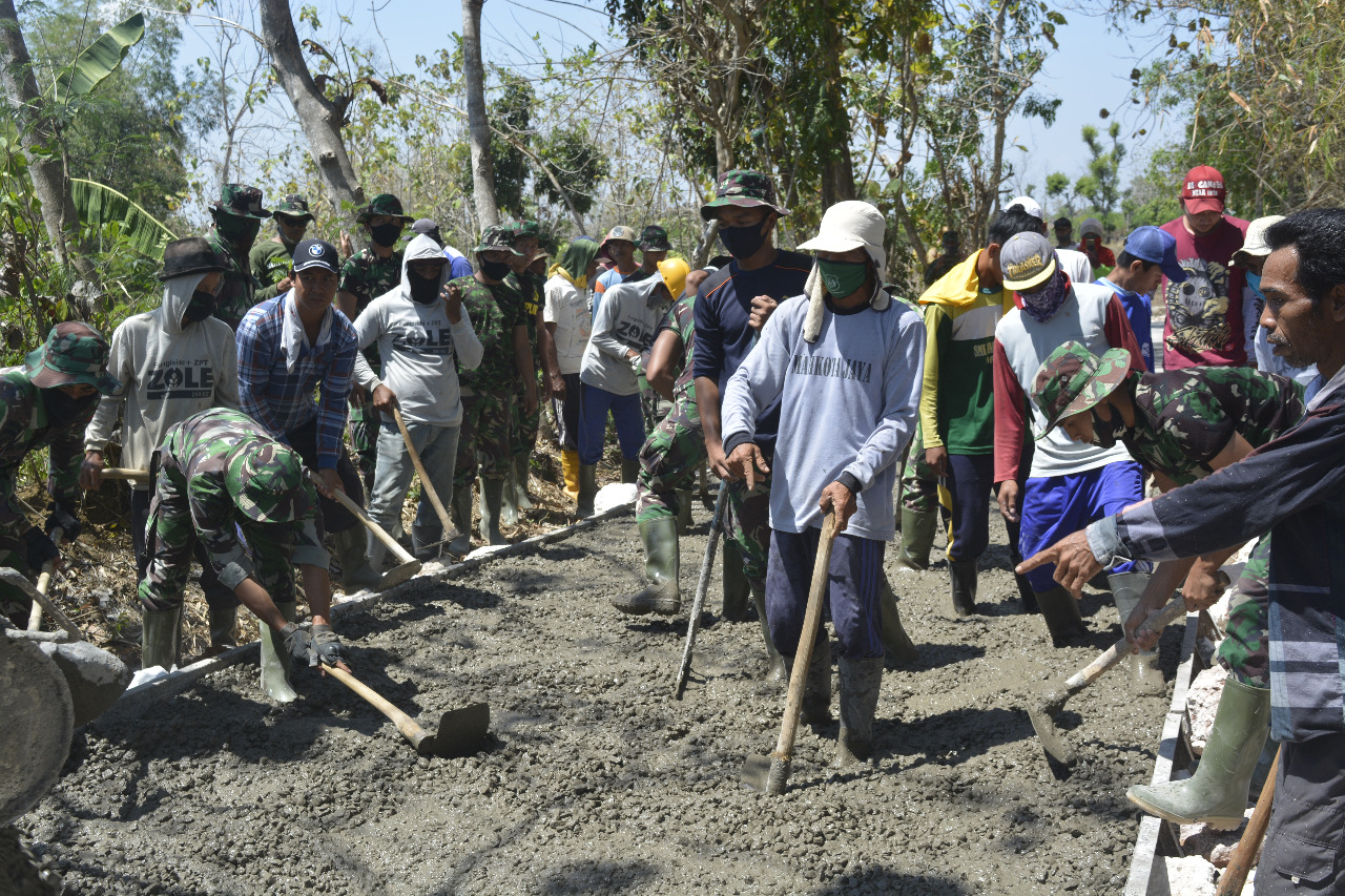 Bahkan segala material dan bahan bangunan sudah tersedia sejak sebelum dilaksanakan pengerjaan baik oleh anggota Kodim 0812/Lamongan maupun anggota satgas TMMD bersama warga desa.
