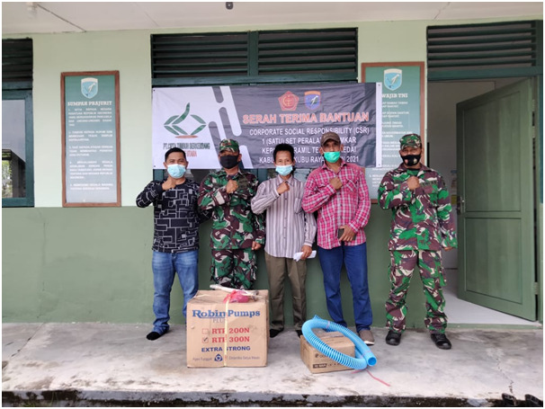 Danramil 1207-08/Teluk Pakedai Lettu Kav Prasetyo menerima secara langsung bantuan mesin Pemadam Kebakaran (Damkar) dari PT Cipta Tumbuh Berkembang (CTB) yang di serahkan oleh Askeb PT CTB Bapak Lan Ariadi. (31/5)