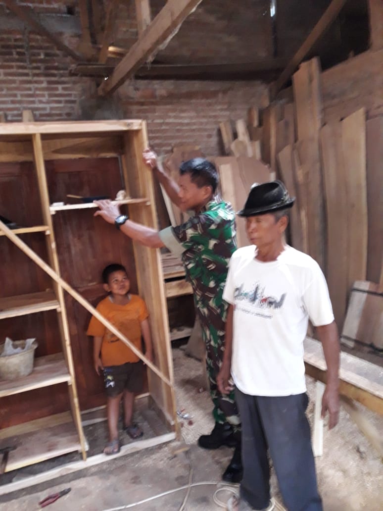 Kudus – TMMD 107 Kodim 0722 /Kudus Sertu Jodie melaksanakan Komsos/Silaturahmi dengan bapak Supardi profesi sebagai tukang kayu warga Rt 06 / II Desa Kedungsari, Kecamatan Gebog, Kabupaten Kudus . Rabu (08/04/2020 ).