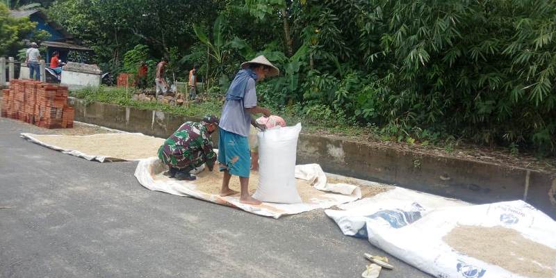 Terlihat petani di Dukuh Pepedan, Pentirejo, memanfaatkan bahu di ruas jalan aspal hasil TMMD Reguler yang telah selesai dibangun membentang sepanjang 1,9 kilometer lebar 3 meter, dari Dukuh Pepedan sampai ke perbatasan dengan Desa Sidosari, Kecamatan Kesesi. Jumat (10/4/2020).