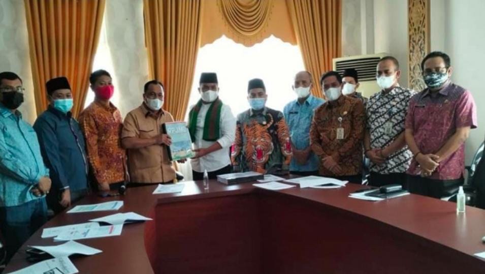 Penyerahan Ranwal RPJMD pemerintahan ini dipimpin langsung Bupati dan Wakil Bupati, H Zukri- H. Nasarudin, SH,MH didampingi Wakil Bupati H Nasarudin dan terima oleh Ketua DPRD Pelalawan Baharudin, SH, didampingi wakil ketua I, H Syafrizal, SE, wakil ketua II, Ketua Komisi III, Monang Pasaribu dan Anggota Fraksi PAN, Faizal.