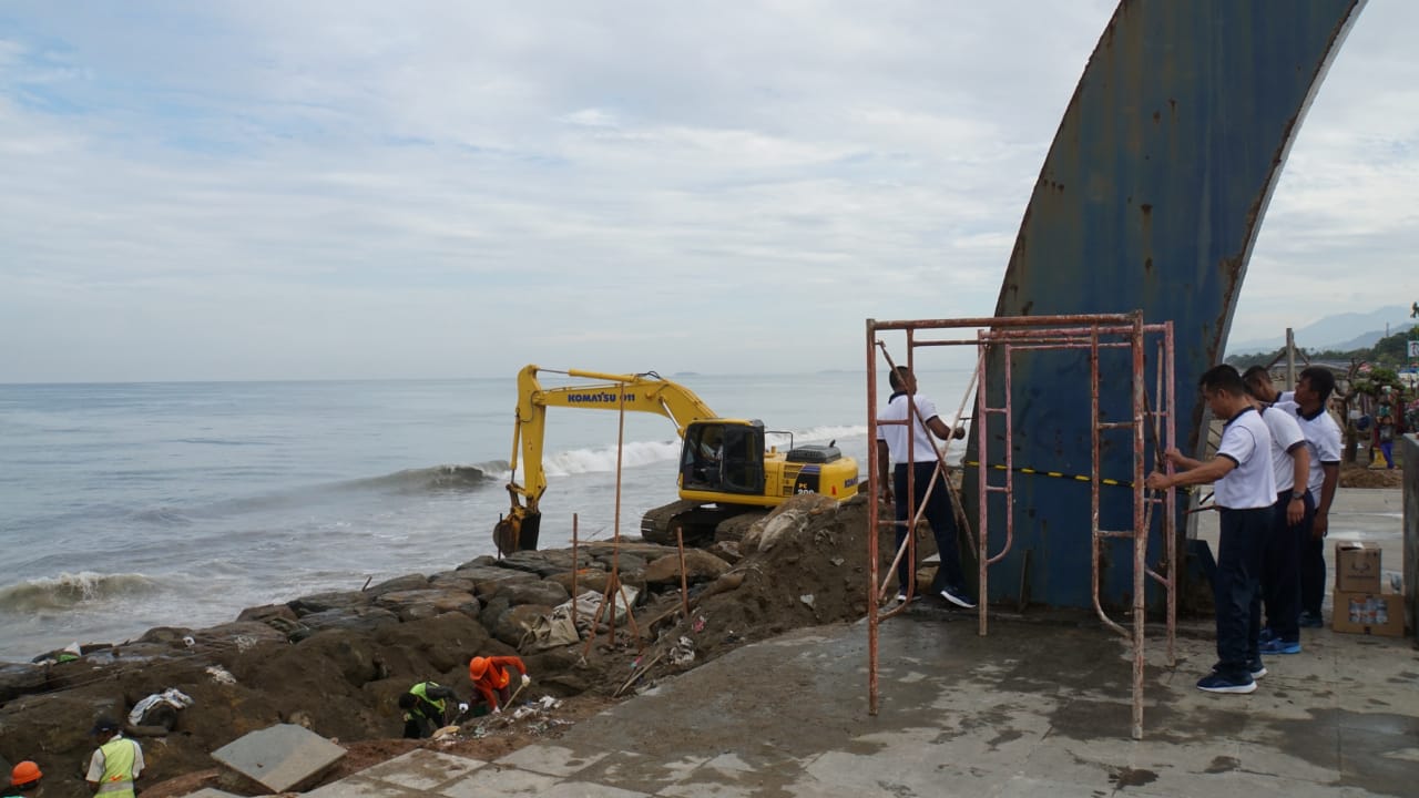 Dengan melihat kondisi saat ini, di karenakan faktor cuaca kurang baik dan faktor lainnya, bangunan dasar monumen bagian ke pantai sudah terkikis/abrasinya oleh air laut atau ombak sehingga akan dapat menyebabkan kerusakan pada bangunan monumen tersebut di kemudian hari jika terjadi pembiaran.