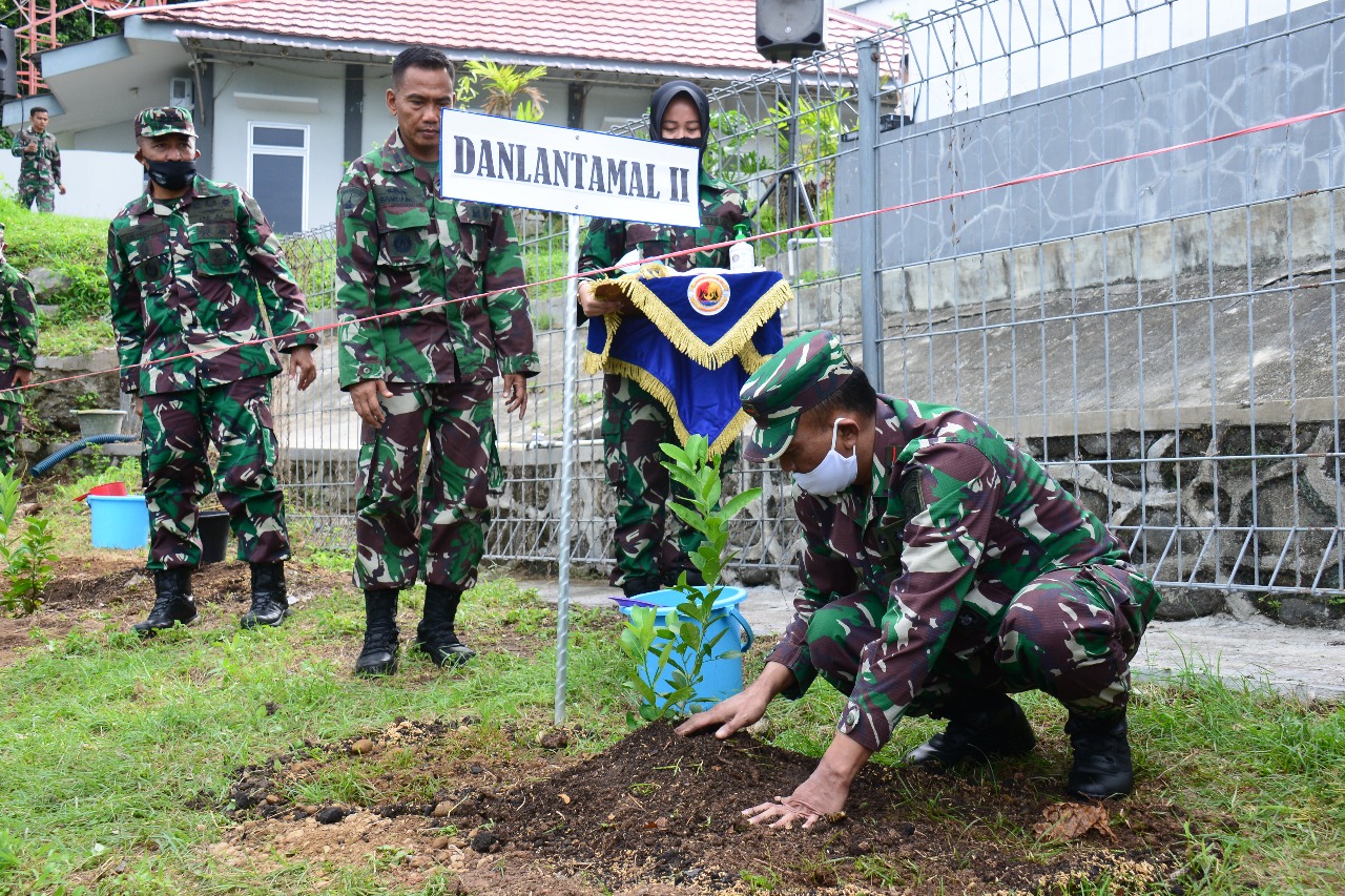 Terlihat, Komandan Pangkalan Utama TNI AL (Danlantamal) II, Laksamana Pertama TNI Dafit Santoso melakukan penanaman bibit jeruk lemon dan di ikuti Wadanlantamal Kolonel Marinir Freddy JH Pardosi.l, SE., SH., MM., Pejabat utama Lantamal, Kadis, Kasatket serta prajurit dan PNS Lantamal.