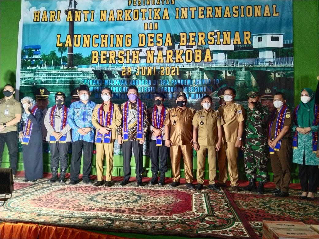 OKU Timur,newshanter.com – Bupati Ogan Komering Ulu Timur H. Lanosin, ST. dan Wakil Bupati OKU Timur H.M.Adi Nugraha Purna Yudha di dampingi Kepala BNNK OKU Timur AKBP Efryanto Tambunan, M.M. melaunching Desa Bersinar (Bersih Narkoba), di Desa Muncak Kabau Kecamatan BP Bangsa Raja, dalam rangka upacara peringatan Hari Anti Narkotika Internasional 2021, Senin 28 Juni 2021.