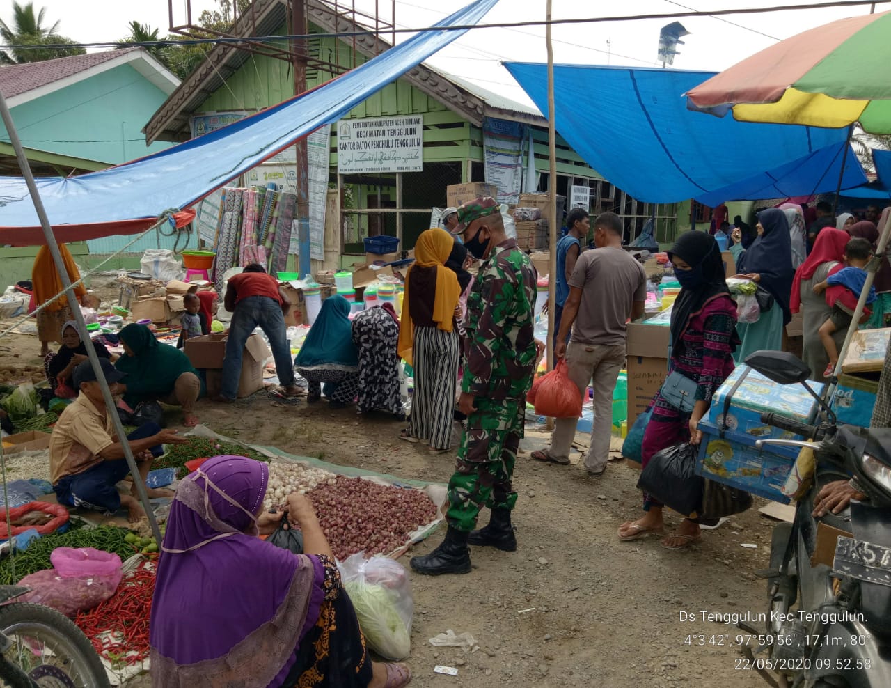 Danpos Ramil Tenggulun Kodim 0117/Atam Peltu Marsono melaksanakan kegiatan pemantauan kesetabilan harga sembako pada pasar pekanan rutin mingguan dalam menjelang lebaran min 2 hari lagi di Dusun. Proyek Desa. Tenggulun, Kec. Tenggulun Kab. Aceh Tamiang. Jumat (22/05/2020)