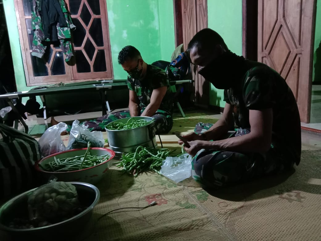 Hal itu dilakukan untuk menyiapkan racikan bumbu untuk masak makan pagi anggota Satgas TMMD 109 yang nantinya akan melaksanakan kegiatan pembangunan di sasaran TMMD Reguler Ke-109 Desa Jatiwarno Kecamatan Jatipuro.