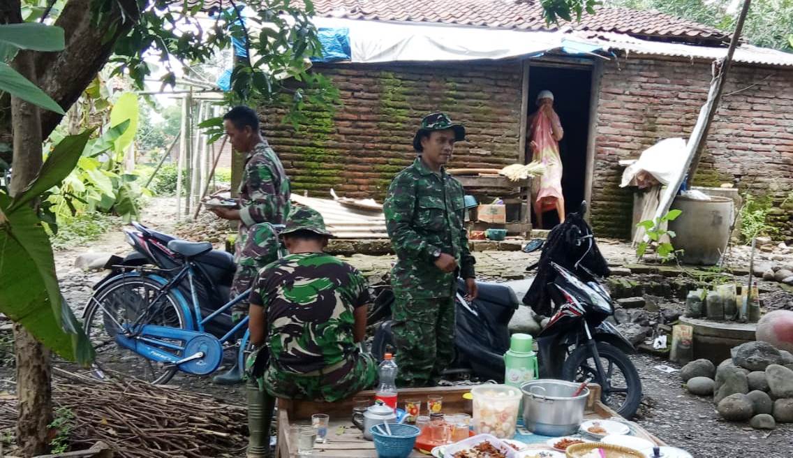 Seperti halnya saat sejumlah anggota Satgas TMMD Kodim Pekalongan, merhab rumah Warsumi di Dukuh Pepedan, RT 03/RW 05, Desa Pantirejo. Selama proses perehaban, begitu rumah Warsumi dirobohkan, acara makan siang selalu dilakukan Satgas TMMD dan warga di alam terbuka. (rus) .