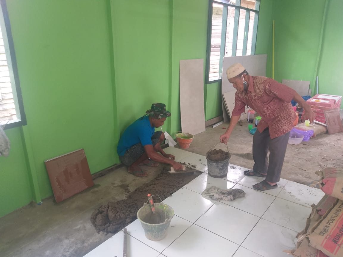 Anggota Satgas TMMD Serda Jabir mengatakan kami saat ini membuat adukan semen untuk pemasangan keramik dan sudah mencapai 60 persen tahap pemasangan Keramik.
