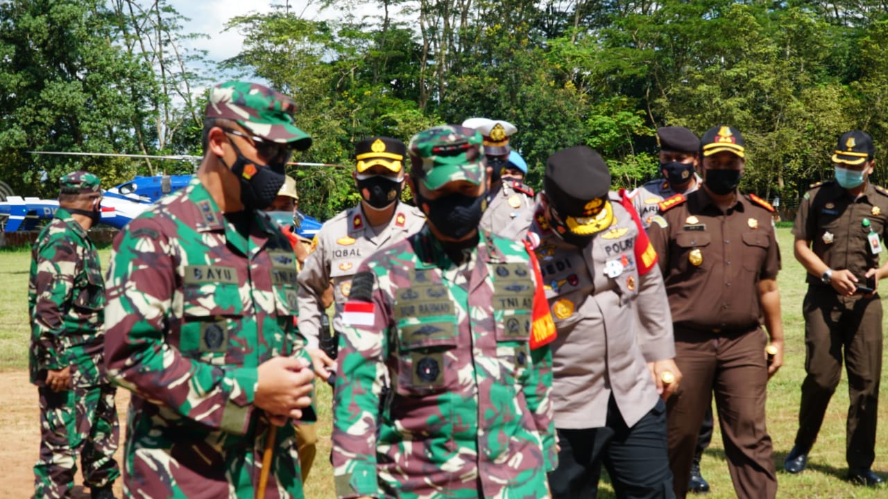 Kapuas, –Panglima Kodam (Pangdam) XII/Tanjungpura, Mayor Jenderal TNI Muhammad Nur Rahmad, bersama Kapolda Kalteng Irjen Pol. Dr. Dedi Prasetyo, M.Hum., M.Si., M.M. serta asops Kasdam XII/TPR Kolonel Inf Asep mengunjungi Kapuas dalam rangka kunker dan meninjau kegiatan Tentara Manunggal Membangun Desa (TMMD) di Desa Saka Lagun Kecamatan Pulau Petak, Kabupaten Kapuas Kalteng ,Senin (29/3/2021).