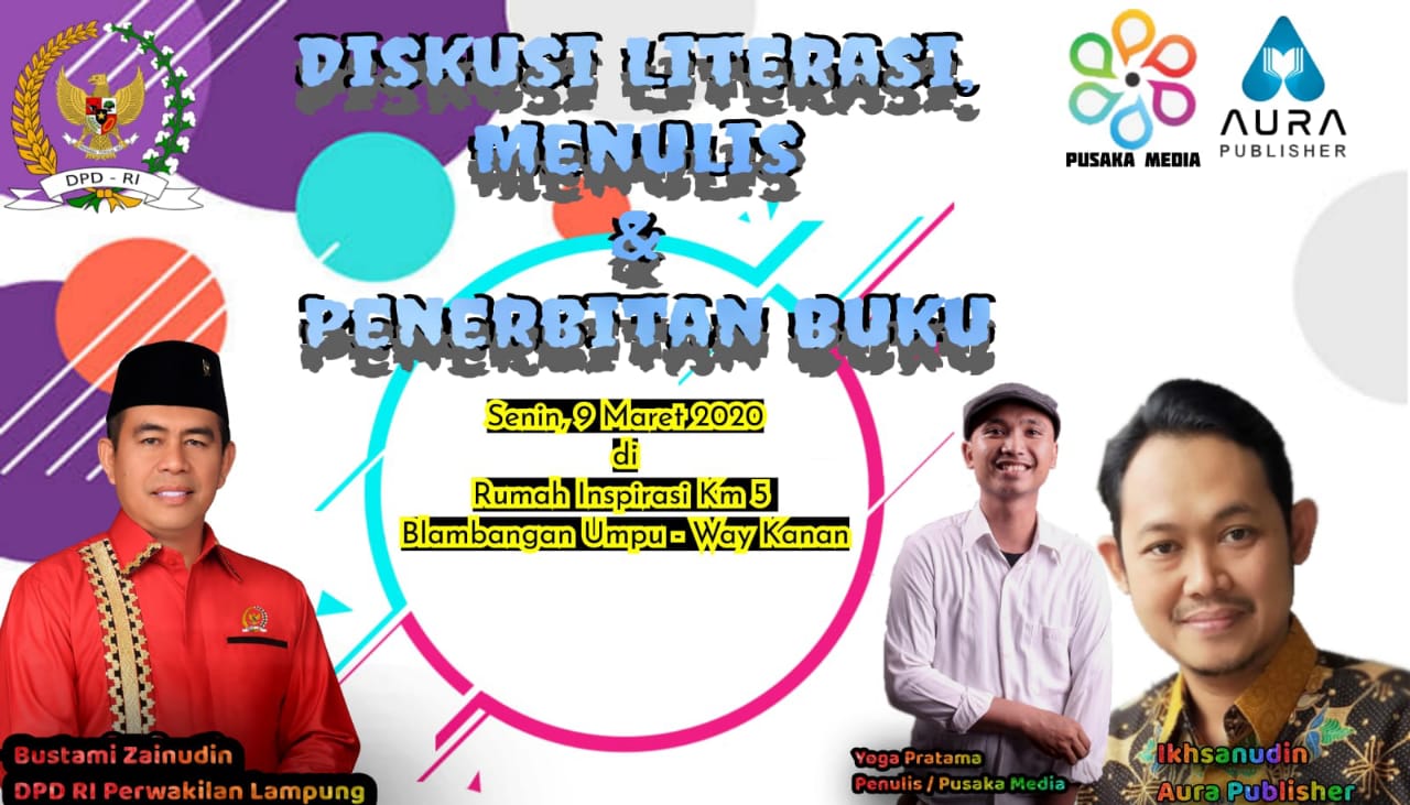 Kegiatan yang akan dihadiri Yoga Pratama tokoh literasi nasional sebagai narasumber dan Owner penerbit mayor /penerbit nasional Aura Publishing Ikhsanudin, serta turut hadir pula Bustami Zainudin anggota DPD RI Dapil Lampung.