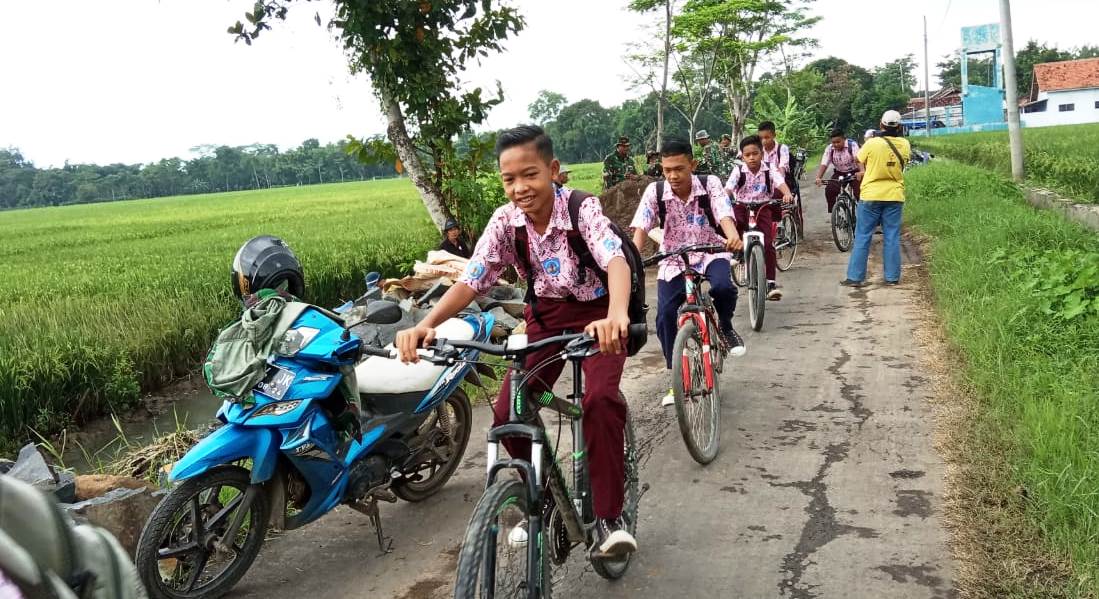 Para anggota TNI yang tengah membersihkan badan ruas jalan yang ada di Desa Pantirejo itulah, yang membuat rombongan para pelajar yang pulang dari sekolah nyicil ayem. Mereka mengatakan, tidak lama lagi saat akan berangkat dan pulang sekolah akan lancar, menyusul jalan yang dilewatinya dibangun oleh TNI.