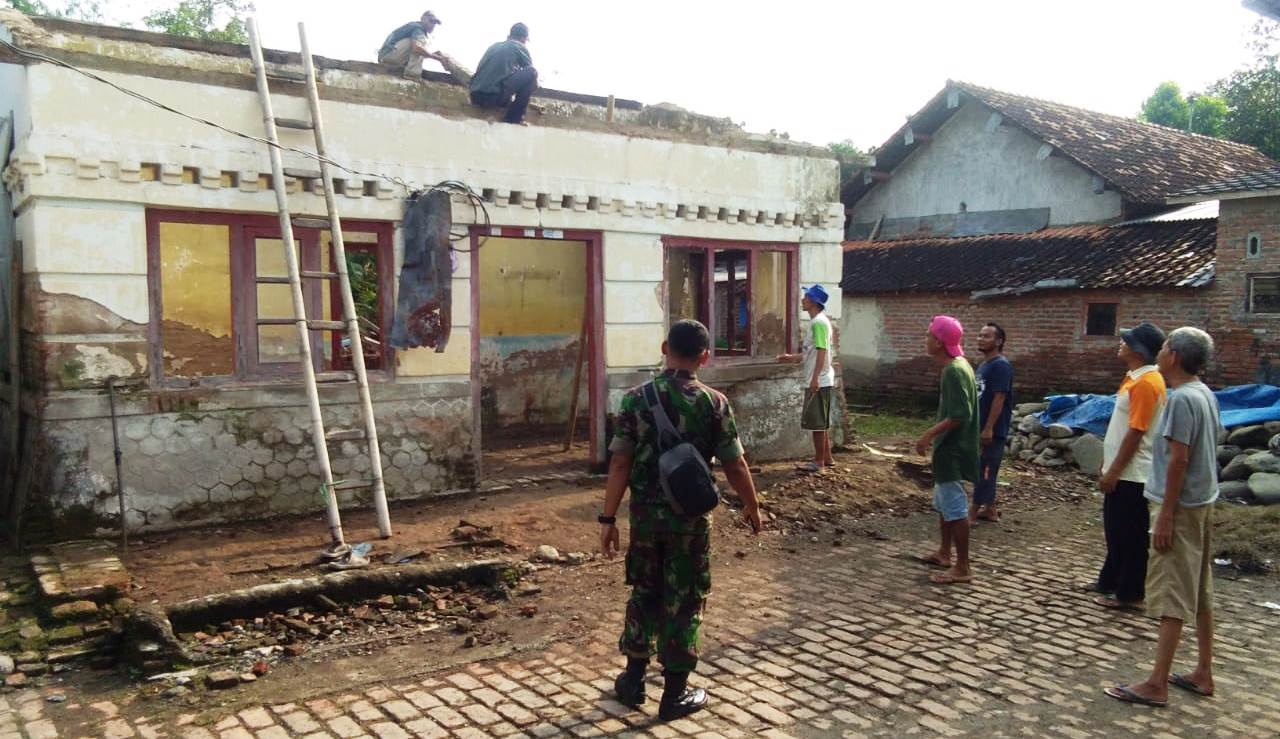 Beberapa orang mulai menurunkan kap rumah, sejumlah kayu yang masih utuh direncanakan akan dipakai lagi. Sedangkan yang sudah lapuk disingkirkan. ”Rumah ini layak kalau ikut direhab di gelaran TMMD, karena memang kondisinya sudah memprihatinkan. Belum lagi, lantai rumah juga masih terbuat dari tanah,” ujar Santo (53), salah satu tetangga Warsumi yang ikut kerja bhakti. (Pendim 0710/Pekalongan)