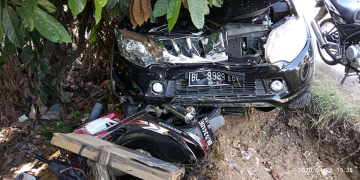 Kemudian, mobil Double Cabin Mitsubishi Triton BL 8989 AP tersebut melebar Arah ke kanan jalan dan menabrak pengendara Sepeda Motor lainnya yakni Yamaha Vixion BK 5938 ADM yang dikendarai oleh MCA dan pengendara sepeda motor Honda Supra BL 5341 UE yang datang dari arah berlawanan, sebutnya lagi.