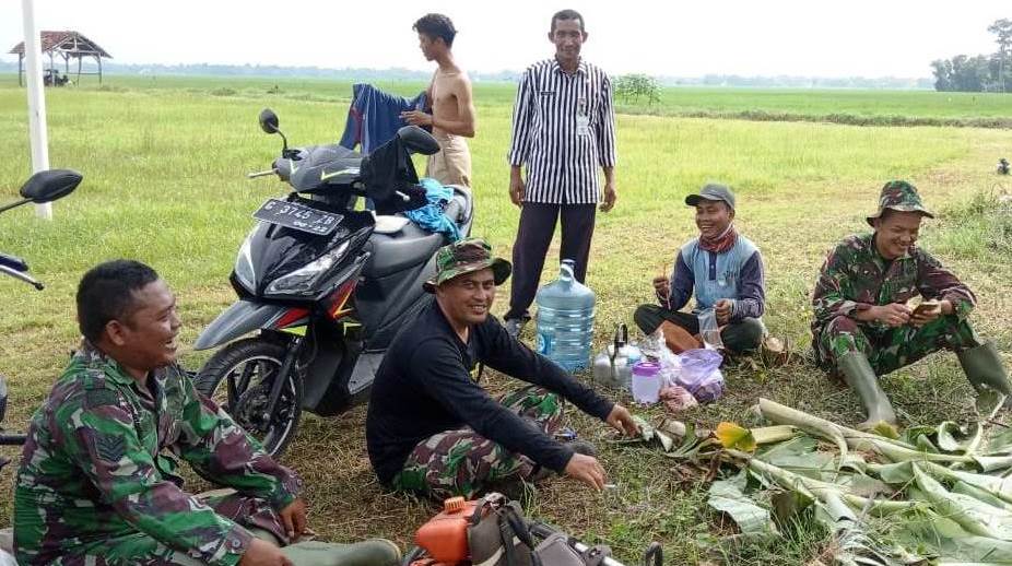 NewsHanter.com, PEKALONGAN,- Saat jeda istirahat dari kerja di lokasi TMMD reguler ke-107 Kodim 0710 Pekalongan, hal ini yang dilakukan TNI dan warga desa sasaran, Desa Pantirejo, Kecamatan Kesesi, Kabupaten Pekalongan, Jawa Tengah.