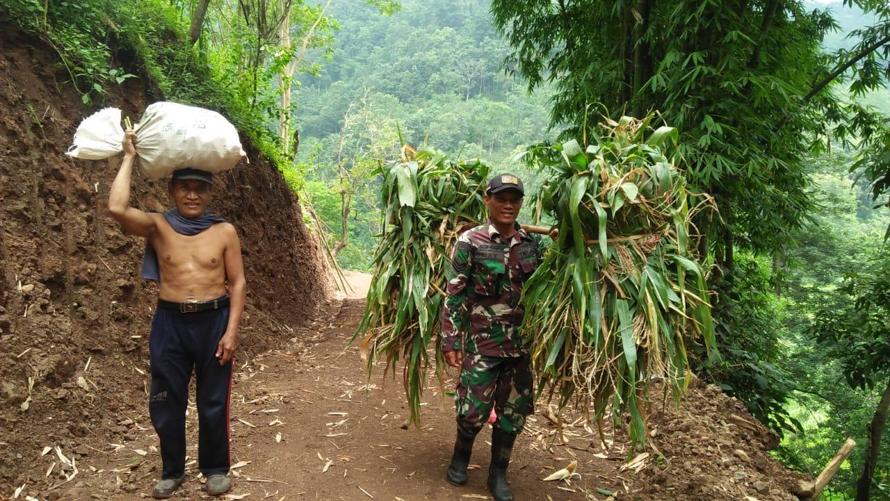 Seperti tampak yang dilakukan oleh Serka May yang kesehariannya selalu memburu berita kegiatan TMMD ke-107 untuk dipublikasikan ke media,   dengan ikhlas menolong pak Deni warga kampung Barat Sawah desa Tlogosari yang kerepotan membawa hasil panen jagungnya saat melewati sasaran pembuatan jalan baru.