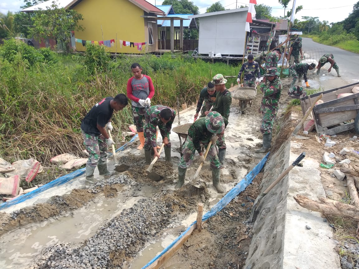 “Kami sudah mulai terbiasa seperti ini, apalagi ada bapak TNI yang merelakan waktu untuk membantu, jadi kami harus lebih semangat dan lebih giat lagi,” ungkap salah seorang warga yang ikut bekerja membantu satgas.