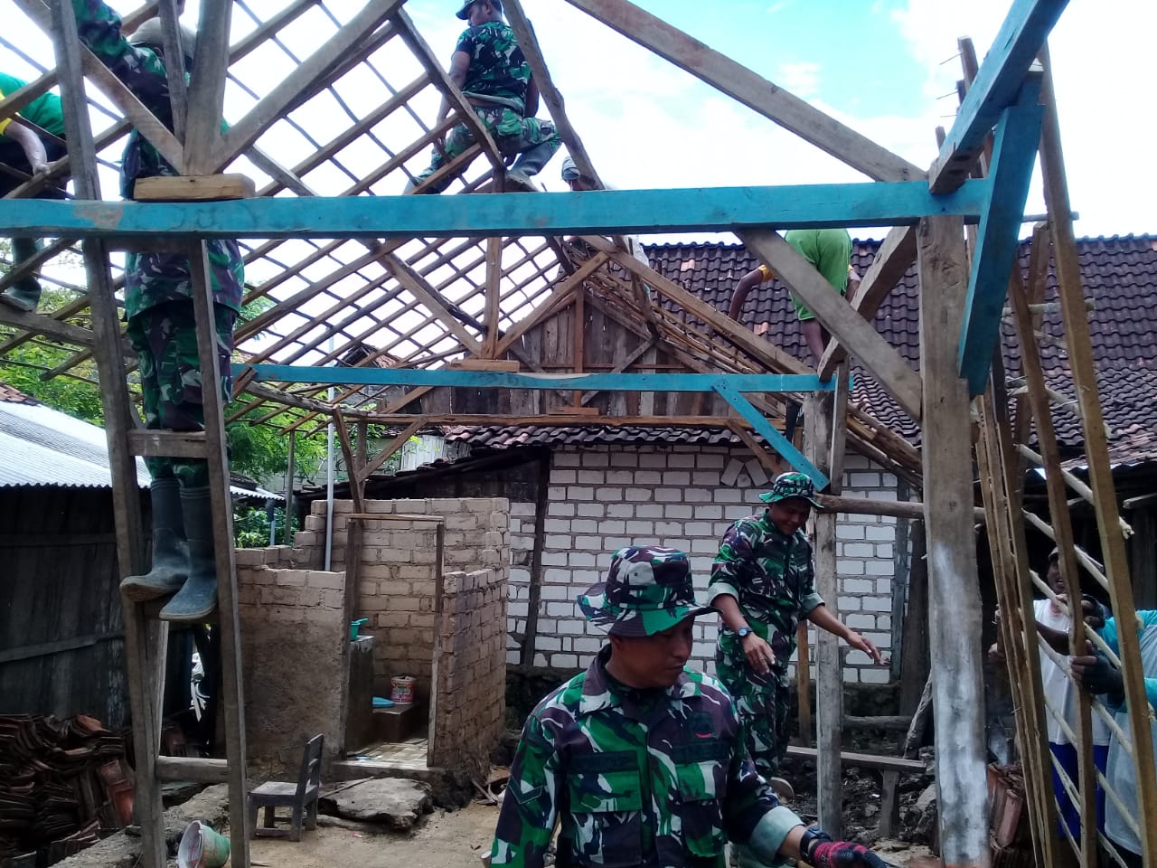 Pelda Bambang selaku Bati Tuud Koramil 02/Jepon, mengatakan, “Kondisi rumah Bapak Suliat tidak sama dengan sasaran RTLH lainnya, hampir seluruh bagian rumah berbahan kayu yang sudah berlobang disana-sini, jadi rentan lapuk dan patah”.