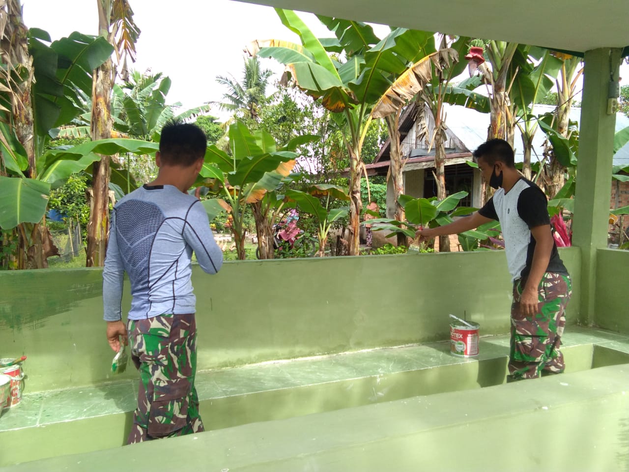 Dinding-dinding poskamling, juga sudah dirapikan dengan kembali di cat personil Satgas TMMD. Sehingga, poskamling yang sudah selesai dibuat ini terlihat lebih rapi dan siap untuk digunakan warga.
