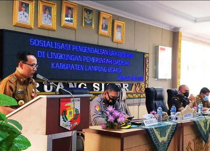 LAMPUNG UTARA, Newshanter.com – Pemerintah Kabupaten (Pemkab) Lampung Utara menggelar Sosialisasi Pengendalian Gratifikasi di lingkungan Pemkab setempat. Kegiatan yang menghadirkan pihak Kejari dan Polres Lampura sebagai narasumber tersebut berlangsung di Ruang Siger Setdakab Lampung Utara, Senin (31/05/2021).