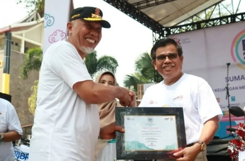 Bukittinggi,News hanter.Com-Pemerintah Kota Bukittinggi meraih penghargaan dari Otoritas Jasa Keuangan (OJK) Sumatera Barat dan Tim Percepatan Akses Keuangan Daerah (TPAKD) Sumbar. Penghargaan itu diterima Sekda Bukittinggi, pada peringatan acara puncak Bulan Inklusi Keuangan (BIK) Provinsi Sumatera Barat tahun 2023, di halaman kantor Gubernur Sumbar, Minggu (29/10/23)