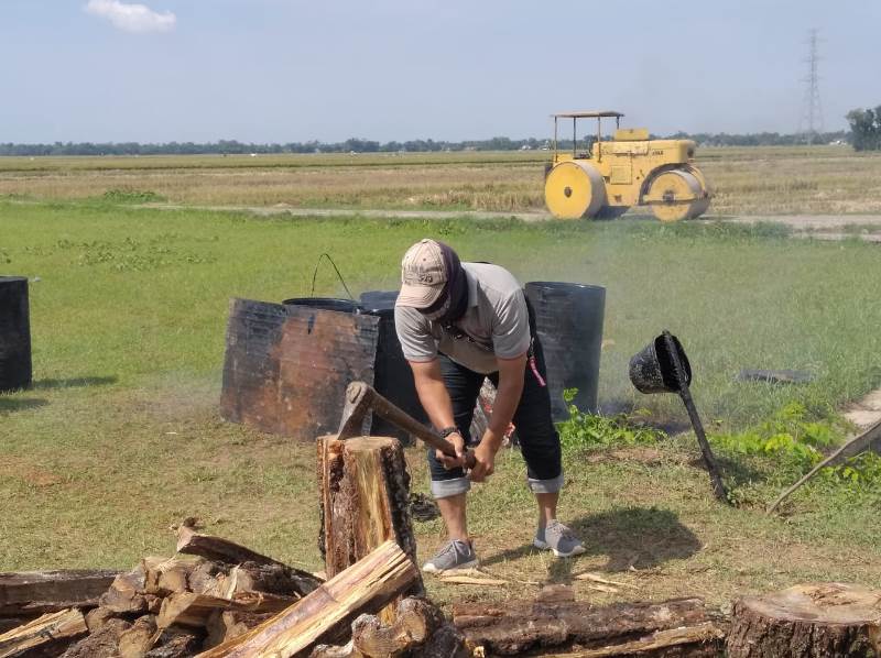 Pekerjaan saat ini yakni pengaspalan dari Dukuh Pepedan ke Dukuh Jlubang, sehingga selain membutuhkan batu split dan aspal dalam jumlah besar, juga membutuhkan kayu bakar sebagai pembakar aspal tentunya. (Aan)