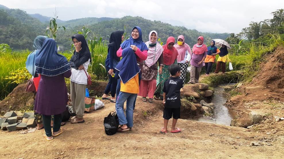Indriyani (27), salah satu warga Ajibarang, yang sempatkan pergi ke Curug Nangga, seusai mengunjungi Curug, dia dan keluarganya menyempatkan untuk melihat banyak Tentara dan warga yang tengah membangun jalan di lokasi itu. 13/7/2020.