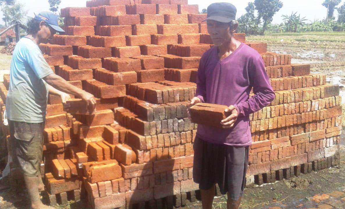 “Alhamdulillah, tidak seperti dulu harus memutar melewati Desa Pasir yang jarak tempuh lebih kurang dari 10 km, dipastikan pemesan akan menambah biaya bahan bakar per seribu bata yang dihargai 1 juta 200 ribu rupiah jadi bertambah 100 ribu.” imbuh Sutaryo saat angkat batu bata berbaju ungu lengan panjang. (rel).