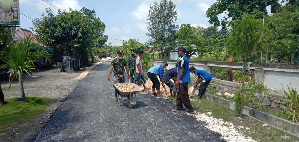 BOJONEGORO – Program TMMD ke-110 Kodim 0813/Bojonegoro dalam pengaspalan jalan di Desa Jatimulyo, Kecamatan Tambakrejo Sudah capai 90 persen. Senin (22/3/2021).