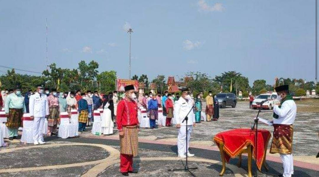 PELALAWAN,NEWSHANTER.COM- Bupati Pelalawan H Zukri melantik eselon lll dan lV, dihalaman Kantor Bupati, Pangkalan Kerinci, Kamis (30/7/2021). Eselon III dan IV berjumlah 183 Pejabat.