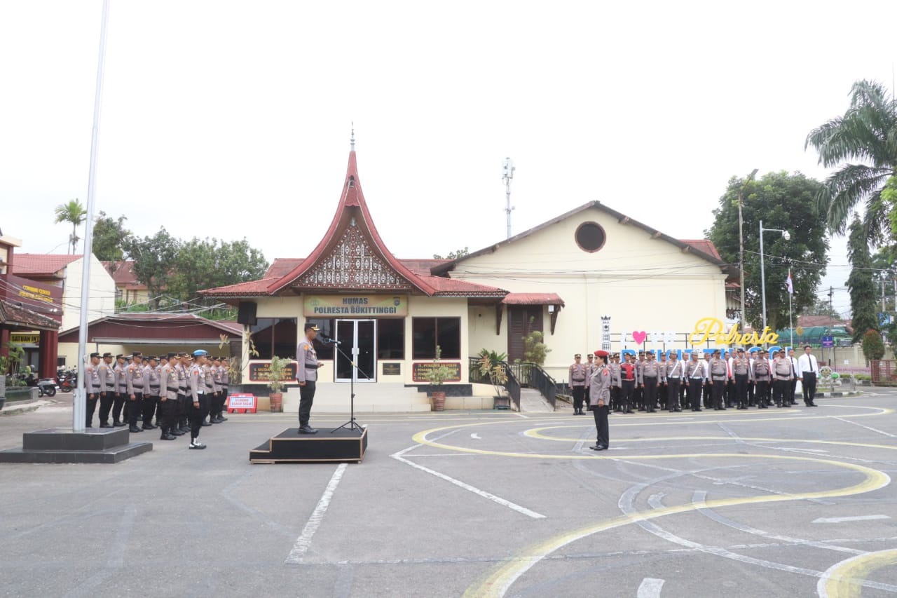 Upacara dipimpin langsung oleh Kapolresta Bukittinggi, Kombes Pol Rully Indra Wijayanto,S.ik,M.Si, serta dihadiri oleh Wakapolresta AKBP Bagus Ikhwan,S.Ik, MH , para pejabat utama, dan anggota Polresta Bukittinggi.