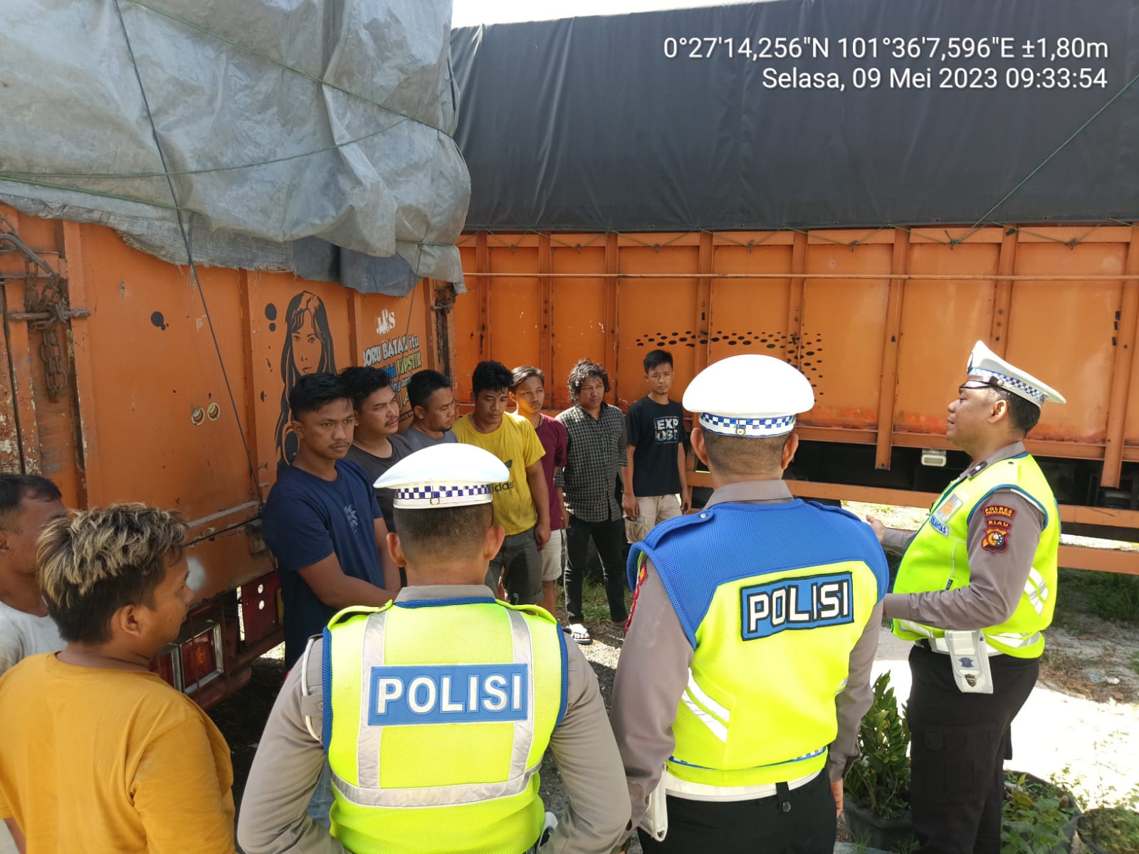 Himbauan dan sosialisasi tersebut diberikan Kepada pengemudi Truck di Rumah Makan dan Warung Kopi di Jalan Lintas Timur KM 27 Desa Simpang Beringin, Kecamatan Bandar Sei Kijang Kabupaten Pelalawan.