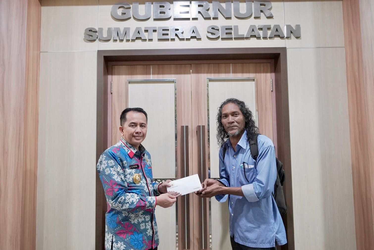 Palembang, newshanter.com – Penjabat (Pj) Gubernur Sumatera Selatan Agus Fatoni memberikan bantuan kepada salah satu penyandang tuna rungu bernama P Yudha Marbun (50). Fatoni menyambut kedatangannya dengan suka cita di Kantor Gubernur Sumsel, Palembang, Senin (26/2/2024).