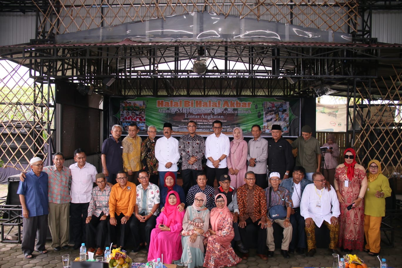 Payakumbuh, NEWSHANTER.COM –- Pj. Kota Payakumbuh berbaur bersama ratusan alumni SMEAN/SMKN 1 Payakumbuh yang datang dari berbagai daerah di tanah air dan luar negeri, menghadiri halal bihalal akbar lintas angkatan di Agam Jua Cafe, Batang Agam, Kamis (27/04/2023).