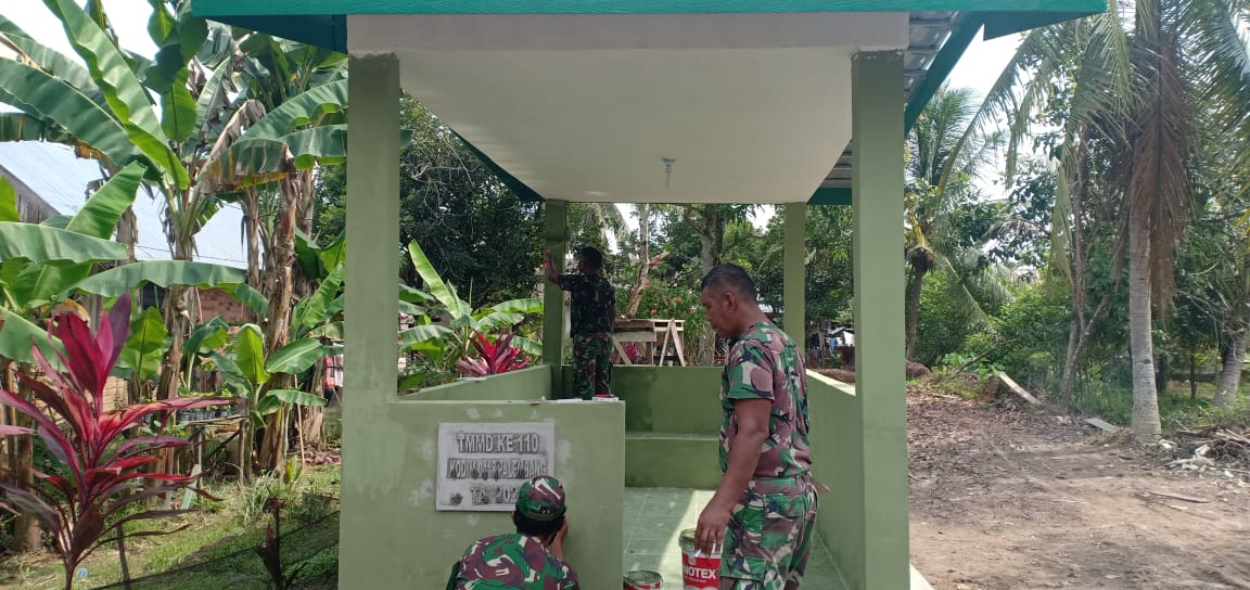 Palembang,newshanter.com – Satgas TMMD ke 110 Kodim Palembang membuat plakat yang ditempelkan di dinding poskamling.