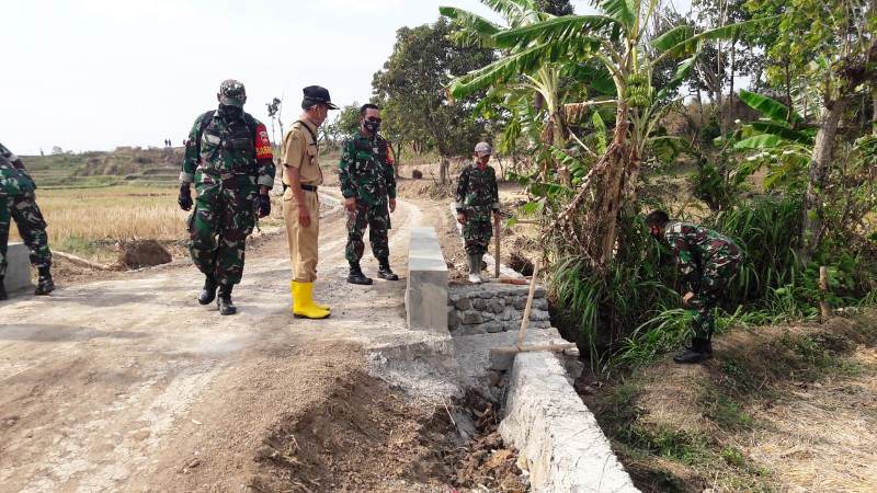 “Selain di titik jalan itu, plat duiker kedua dengan volume 1,3 x 4 meter dan ketebalan 20 centimeter, juga telah selesai dibangun di titik 900 meter ruas jalan TMMD penghubung antara Dusun Karanganyar ke Dusun Kedung Kandri, Desa Kalinusu,” terangnya.