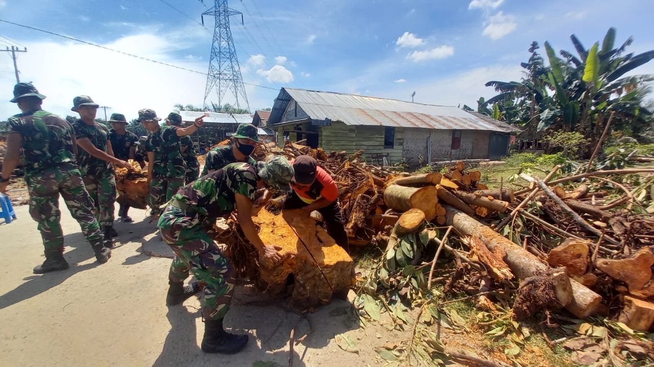PLETON PBA (PENANGGULANGAN BENCANA ALAM) YONIF 8 MARINIR DENGAN SIGAP BERGERAK MEMBANTU WARGA DESA PAYAMALA BERSIHKAN POHON YANG TUMBANG