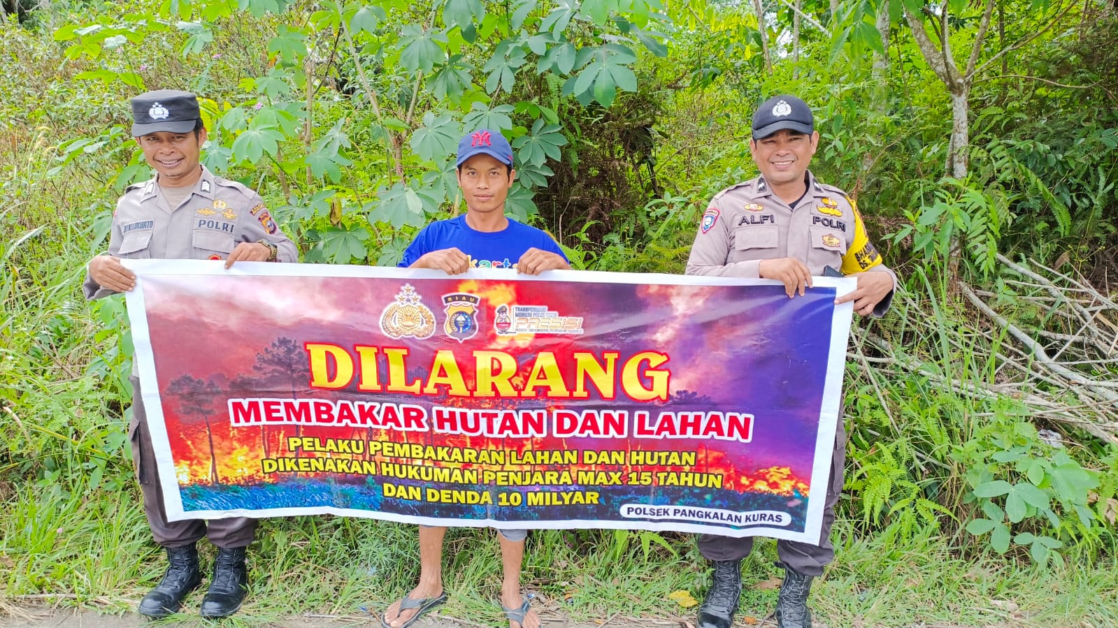 PELALAWAN, NEWSHANTER.COM-Polsek Pangkalan Kuras, jajaran Polres Pelalawan Polda Riau lakukan kegiatan sosialisasi larangan membuka hutan dan lahan dengan cara membakar, Rabu (10/1/2024).