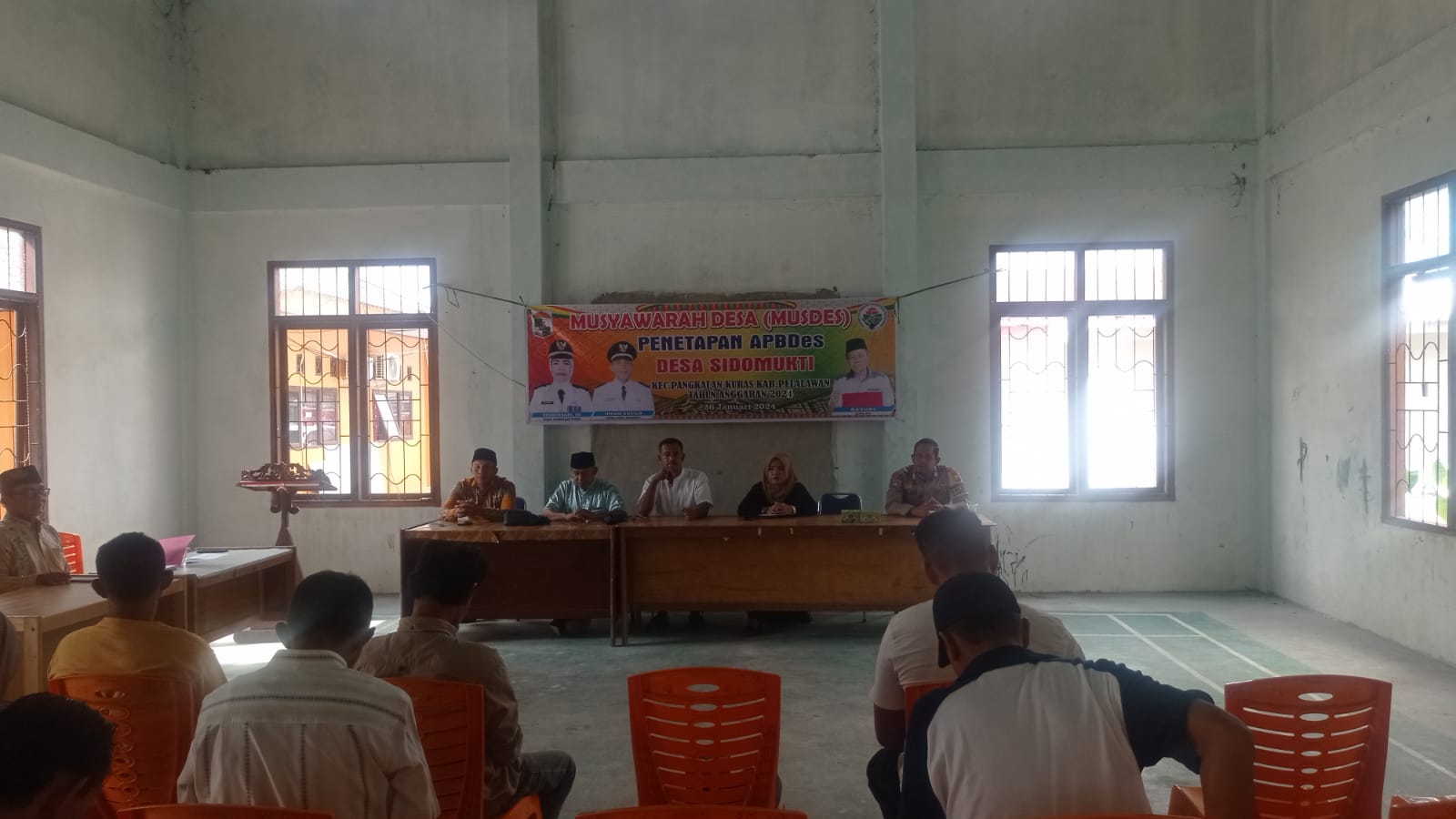 PELALAWAN, NEWSHANTER.COM- Polsek Pangkalan Kuras jajaran Polres Pelalawan Polda Riau, hadiri Musrenbang Deaa Sidomukti tahun anggaran 2024, di Balai kantor Desa Sidomukti, kegiatan dipimpin Ketua BPD Desa Sidomukti Dasuki, Jumat (26/1/2024).