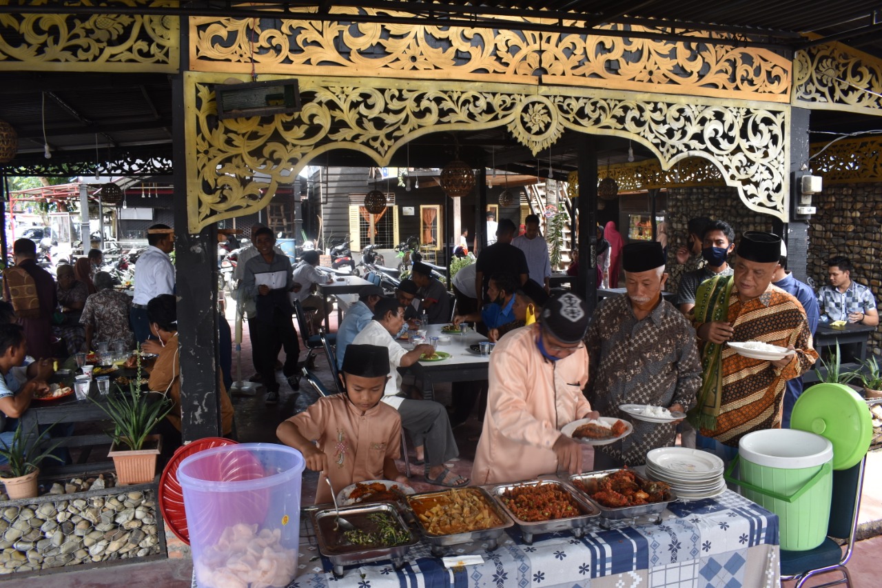 Acara makan siang bagi kaum dhuafa ini diadakan di Kafe TSJ Jalan Ahmad Yani Kecamatan Bangkinang Kota, dengan menerapkan protokol kesehatan cegah penyebaran Covid-19.