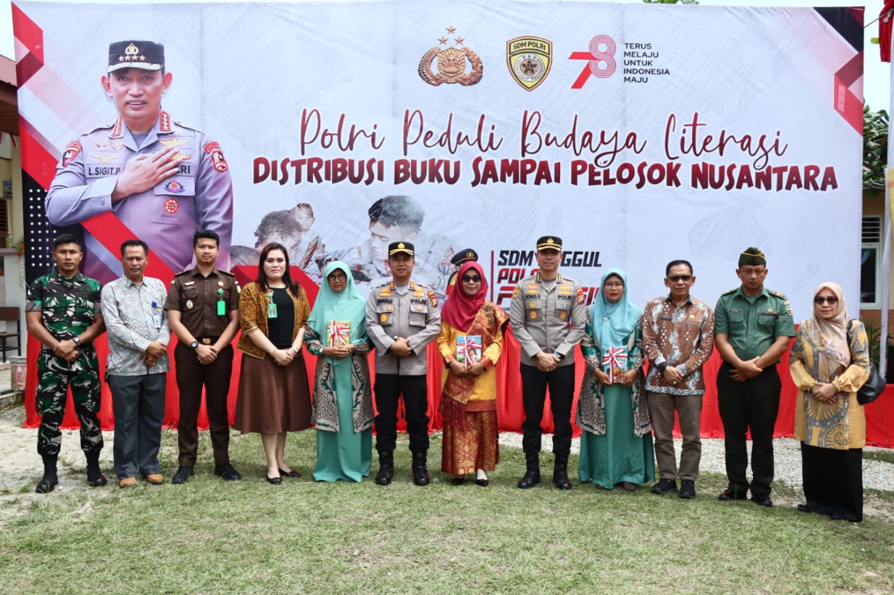 Kegiatan Program Polri Peduli Budaya Literasi Distribusi Buku Sampai ke Pelosok Negeri dihadiri oleh Karo SDM Polda Riau Kombes Pol Joko Setiono S.I.K., S.H., M.Hum, Pj Bupati Kampar yang diwakili oleh Asisten III Ir Azwan, Kapolres Kampar Akbp Ronald Sumaja SIK, Kabag Binkar Polda Riau AKBP Bachtiar Alponso , Dandim 0313 / KPR yang diwakili oleh Pasi Pers Lettu Suhendri, Danyon 132 BS diwakili oleh Letda Inf. Simbolan, Ketua Pengadilan Negeri Bangkinang yang diwakili oleh Ibuk Hakim Petra Jeanny Siahaan, Kajari Kampar yang diwakili oleh Shodic, Waka Polres Kampar Kompol Andi Cakra dan lainnya.