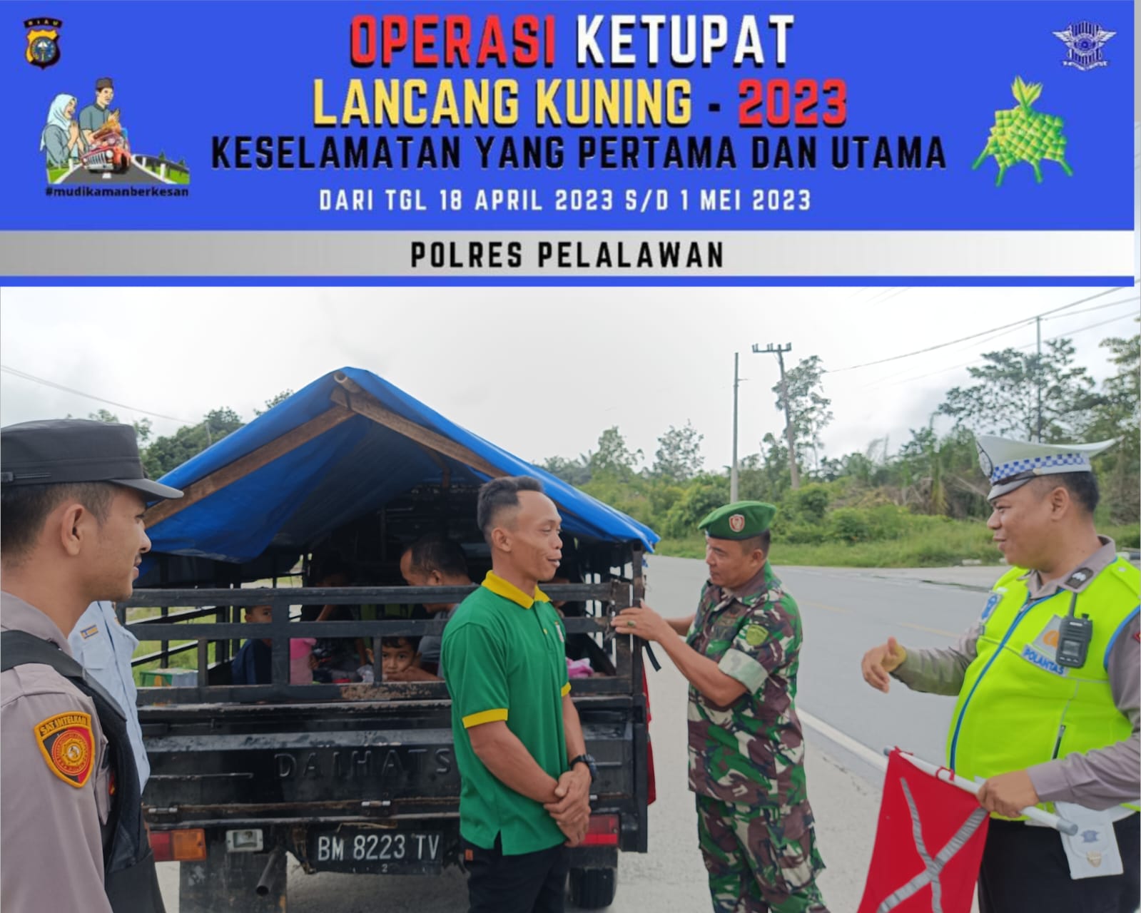 Kapolek Bandar Sei Kijang AKP Mulian Dony, S.H mengatakan, personil Pos Pam Simpang beringin memberikan himbauan kepada masyarakat yang membawa kendaraan bermuatan terkait, aturan Gubernur Riau tentang pembatasan operasional angkutan barang selama lebaran 2023.