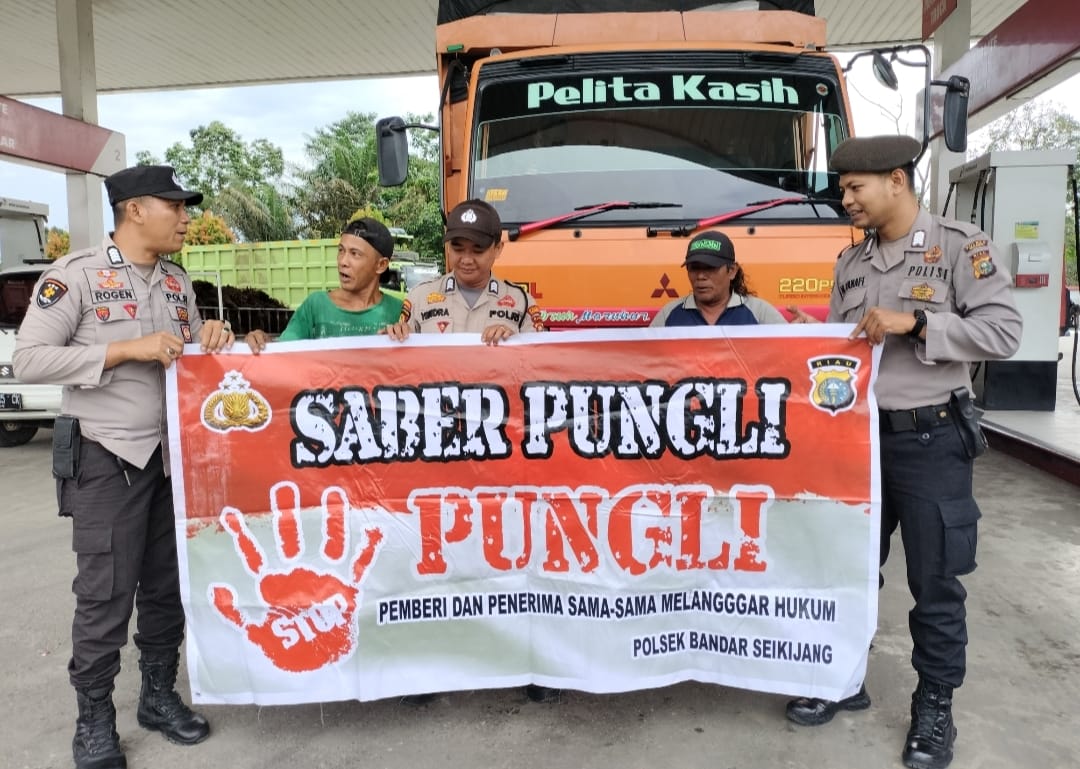 PELALAWAN, NEWSHANTER.COM – Personel Polsek Bandar Sei Kijang, jajaran Polres Pelalawan Polda Riau, terus menyosialisasikan Sapu Bersih Pungutan Liar (Saber Pungli) kepada masyarakat, Kamis (6/7/2023).