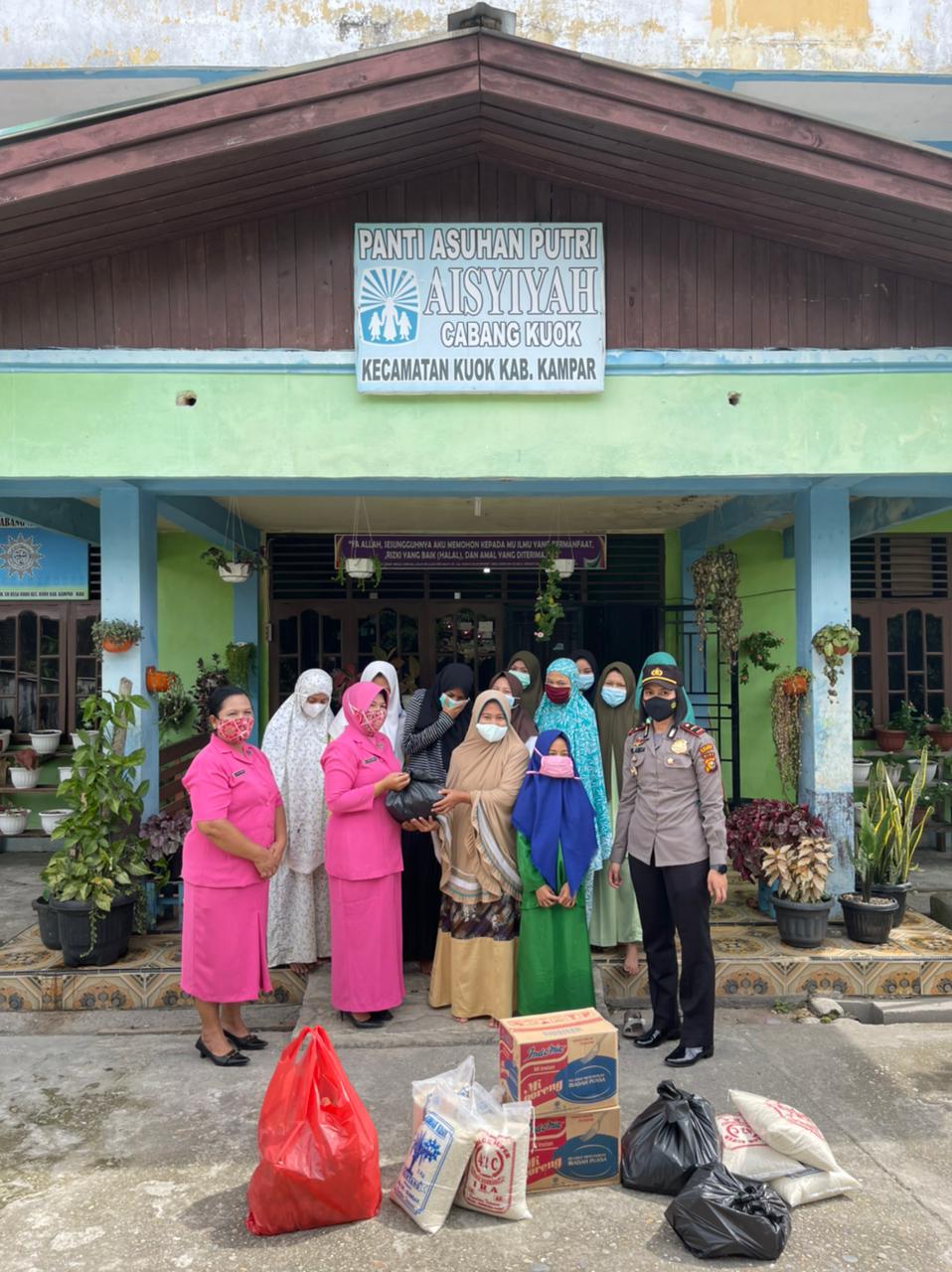 KUOK,newshanter.com – Personel Polsek Bangkinang Barat beserta Bhayangkari, adakan kegiatan bakti sosial memberikan bantuan bahan kebutuhan pokok kepada Panti Asuhan dan beberapa warga Desa Kuok yang terdampak musibah kebakaran.