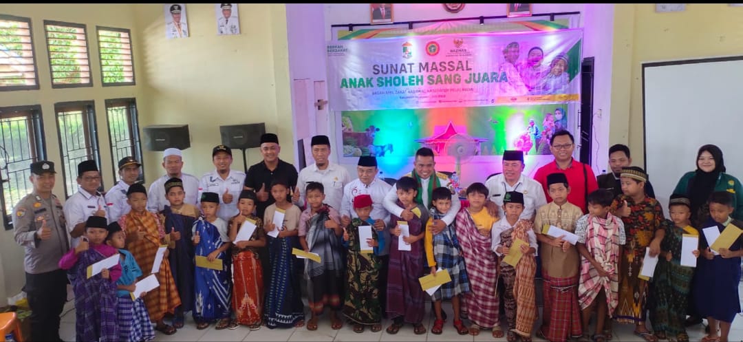 PELALAWAN, NEWSHANTER.COM – Sunat Massal, Anak Sholeh Sang Juara Badan Amil Zakat Nasional Pelalawan Sekecamatan Kerumutan, berlangsung di Desa Pematang Tinggi, Rabu (5/7/2023). Tepatnya, di Gedung Serba Guna Desa setempat.