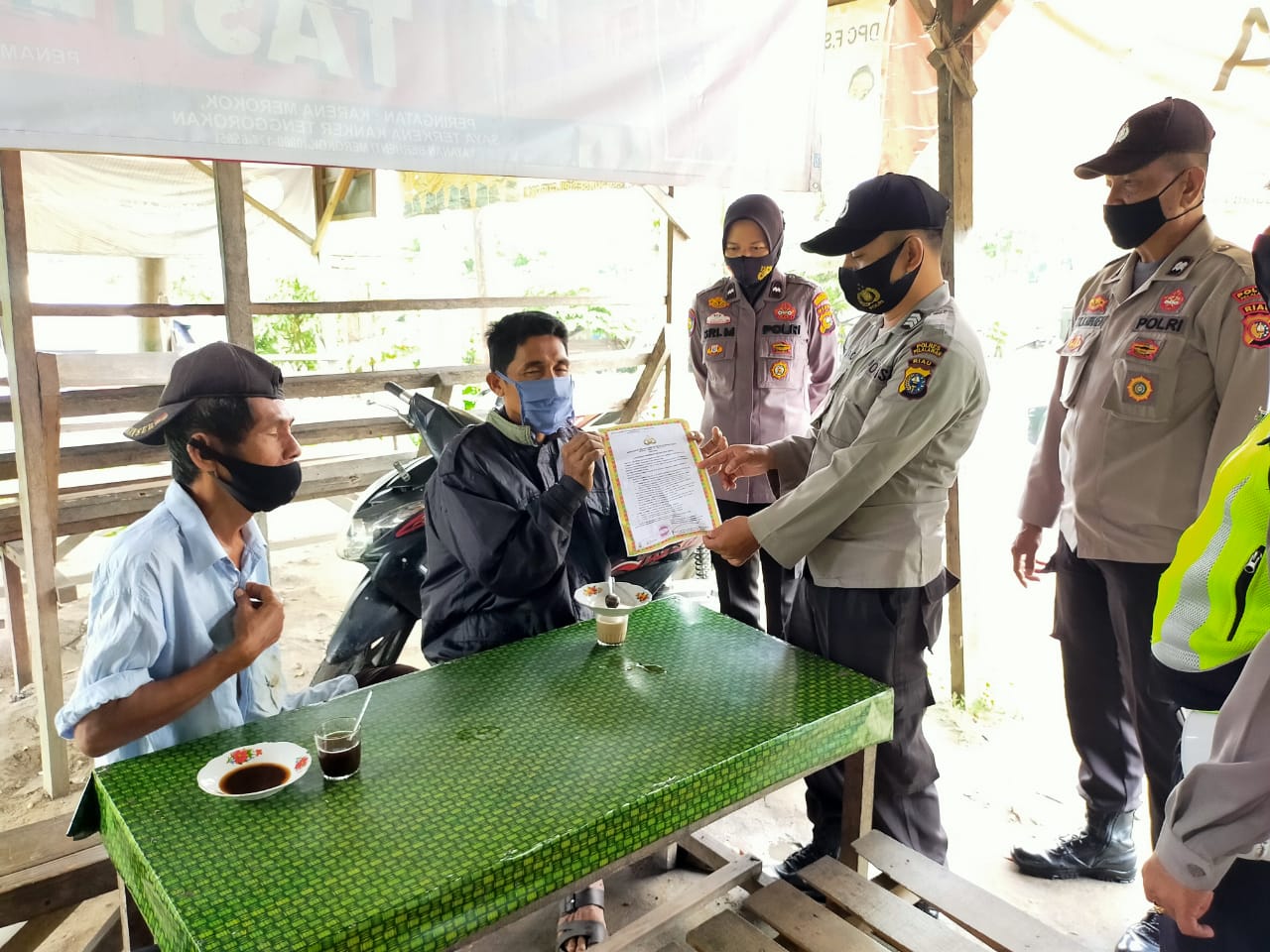 PELALAWAN, NEWSHANTER.COM – Dengan cara mendatangi warga-warga, Polisi Sektor Pangkalan Kuras Resort Pelalawan mensosialisasikan larangan membuka lahan dengan cara membakar, Rabu (13/1/2021). Selain itu, juga menyebarkan Maklumat Kapolda Riau serta memberikan pemahaman ancaman bagi pelaku pembakar.
